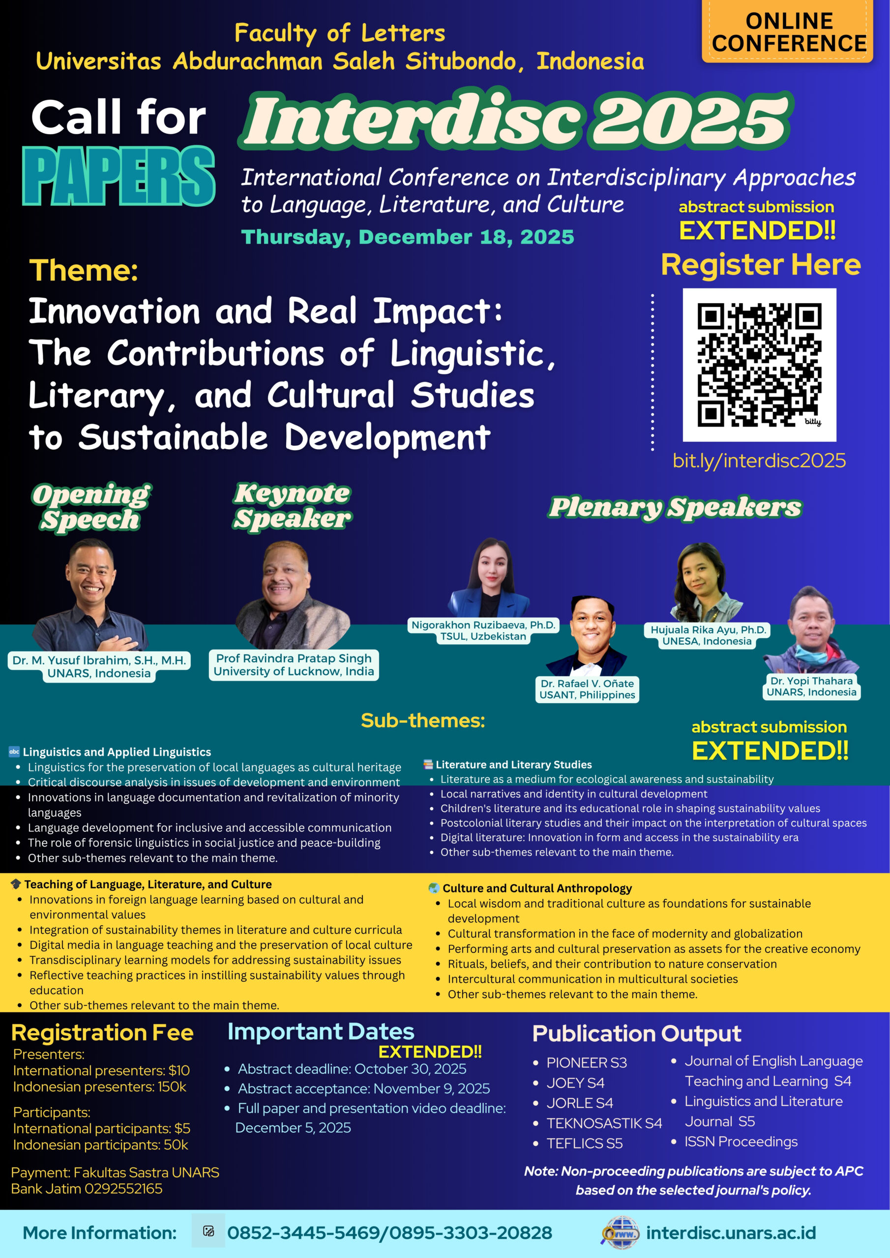 The Faculty of Letters, Universitas Abdurachman Saleh Situbondo, Indonesia is delighted to invite you to participate in Interdisc 2025: International Conference on Interdisciplinary Approaches to Language, Literature, and Culture, which will be held on December 18, 2025.